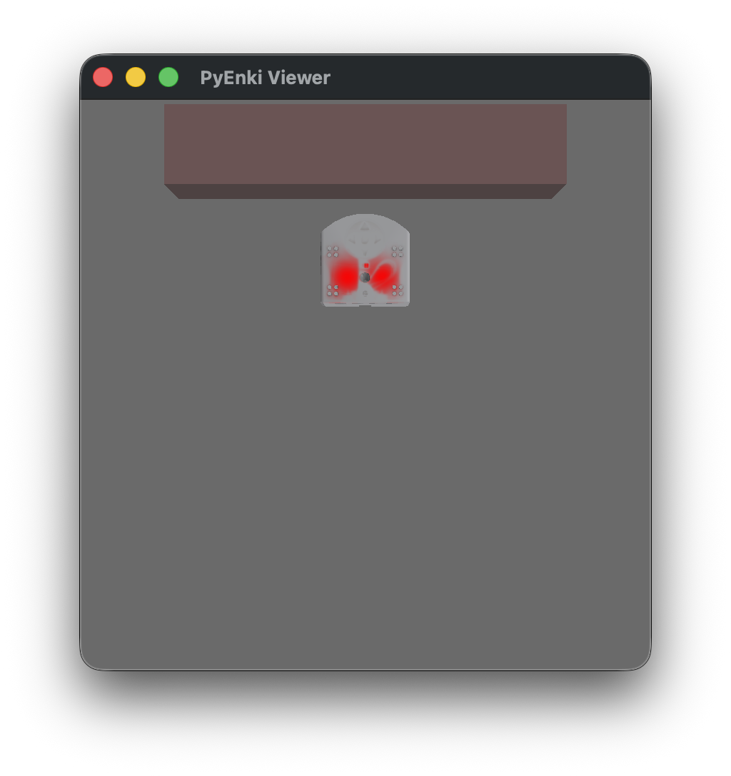 Finally, you may run and visualize the simulation in real time, or in batch-mode with pyenki.World.run() or by calling pyenki.World.step() in a loop.