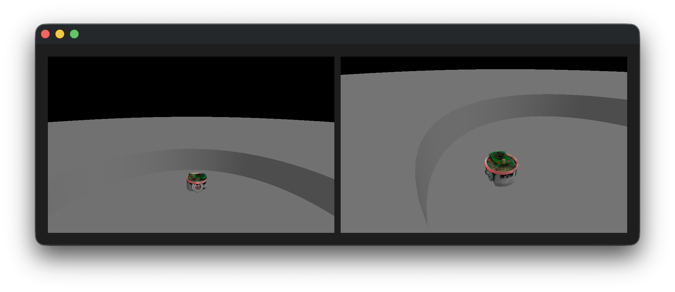 In these example, we manually create and run a Qt application, with a window that displays a world from two different points of view (using either PyQt6 or PySide6)
